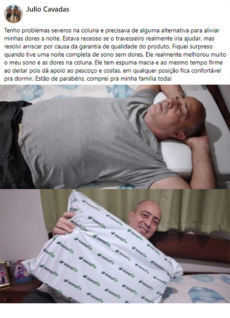 "Realmente funciona! Logo na primeira noite eu dormi 8 horas seguidas e quando acordei parecia que minha coluna e pescoço tinham voltado pro eixo certo. Esse negócio fez milagre comigo, nunca mais senti dor nas costas e até o meu ronco parou.", contou Douglas aliviado.